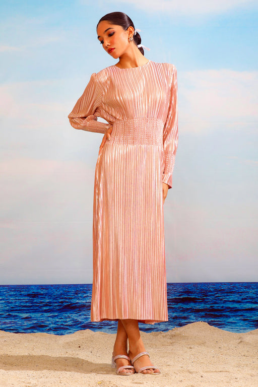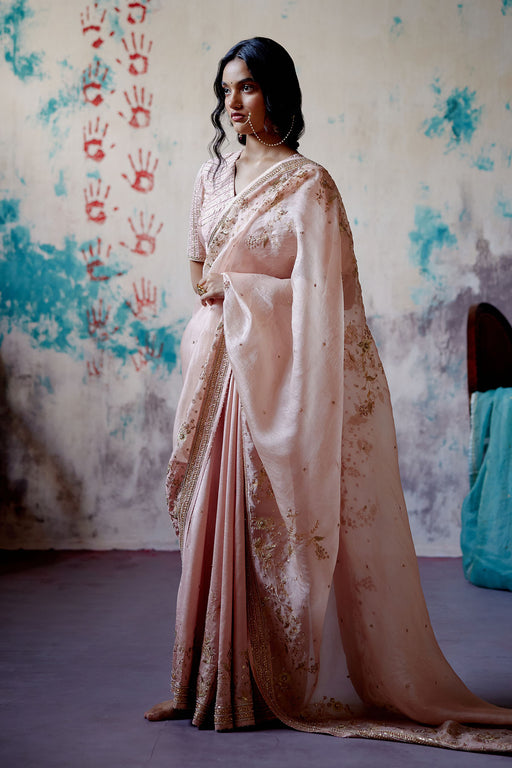 View full detailsSoft and feminine, this peach pink ensemble captures timeless grace with a contemporary edge. The kurta is crafted in airy organza and features del...