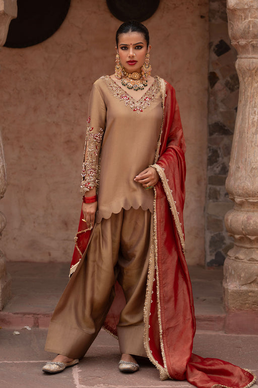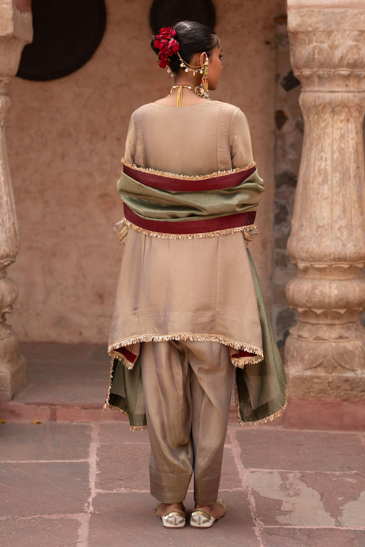 View full detailsA modern ode to royal traditions — the Zehra set in a luminous antique bronze tissue exudes quiet opulence and old-world charm. The short kurta is ...