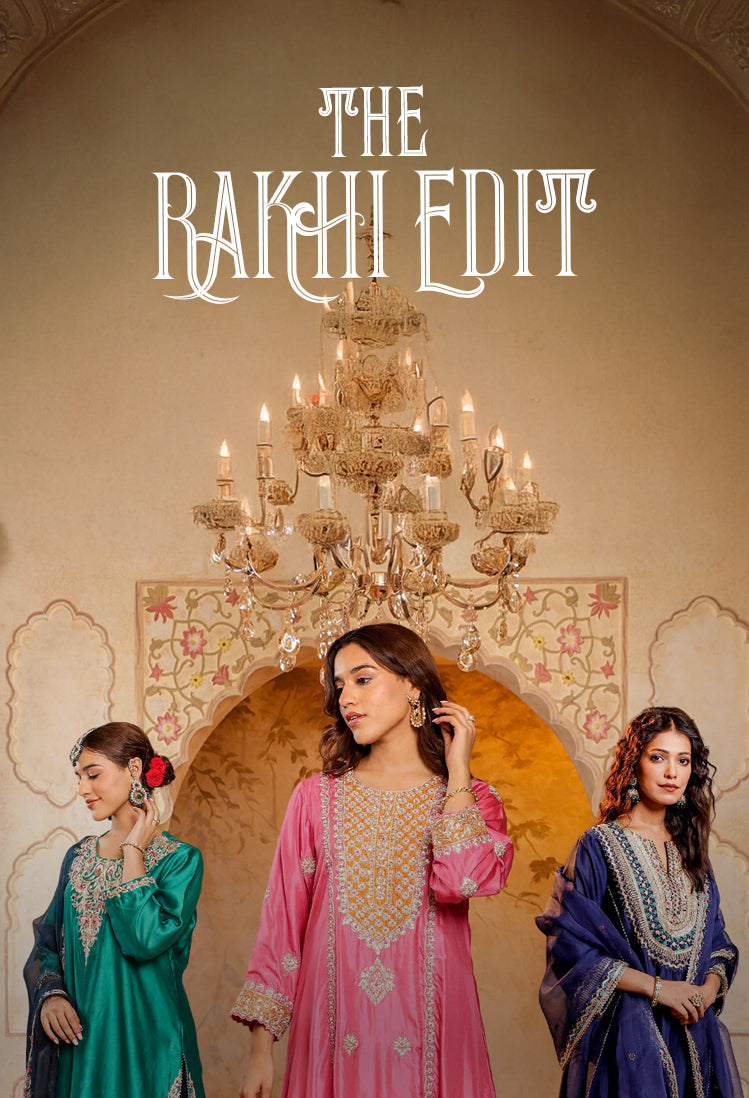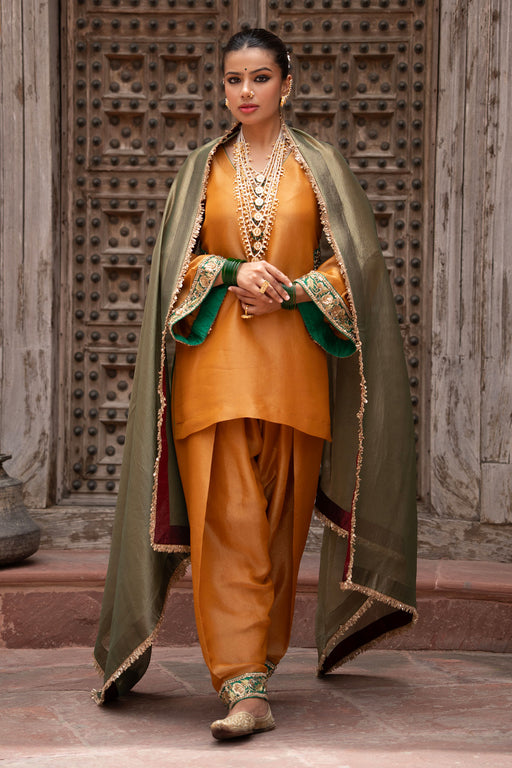 View full detailsRooted in tradition, yet redefined for the modern muse — the Noor set in olive gold tissue brings together relaxed elegance and regal detailing. Th...