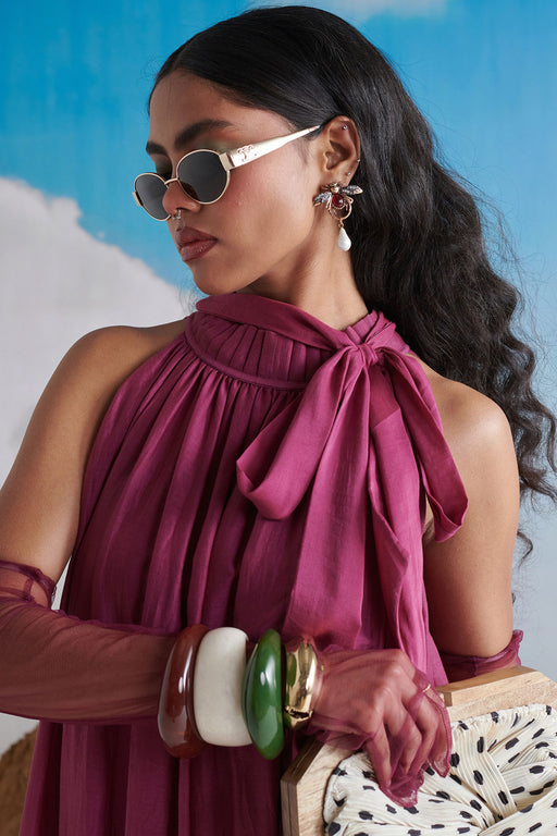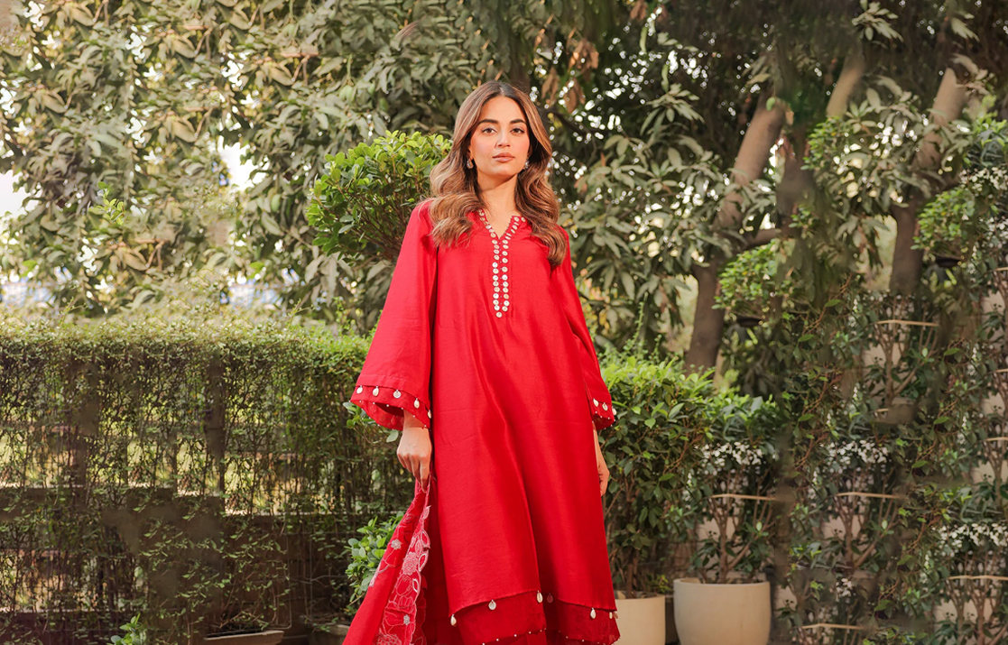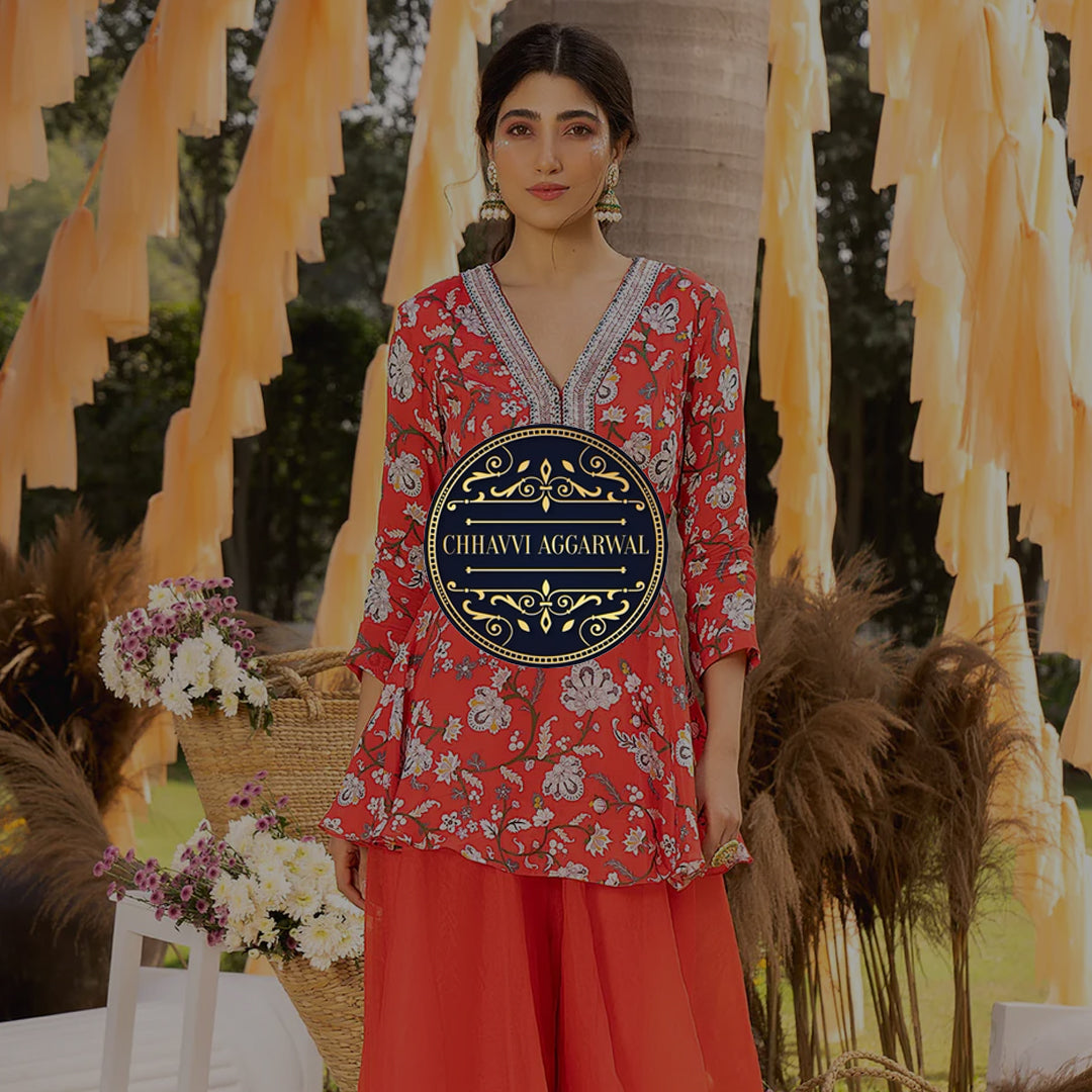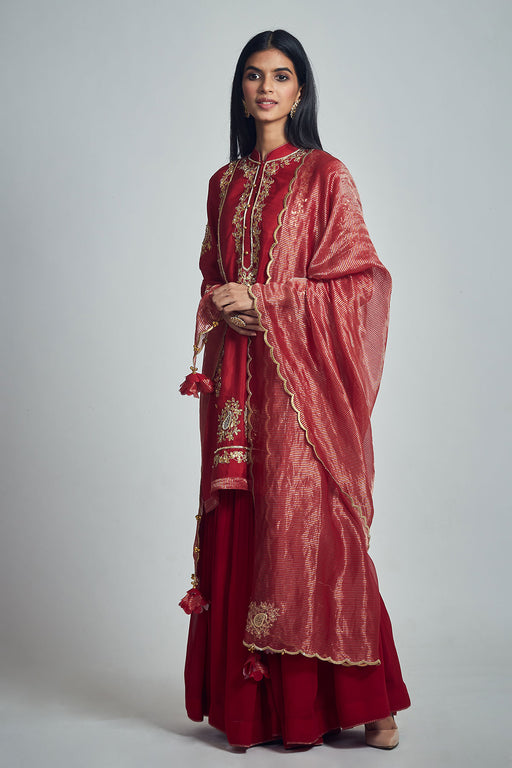 View full detailsFierce and festive, this statement-making ensemble is crafted in bold red silk, designed for the modern muse who honors tradition. The sleeveless s...