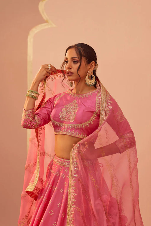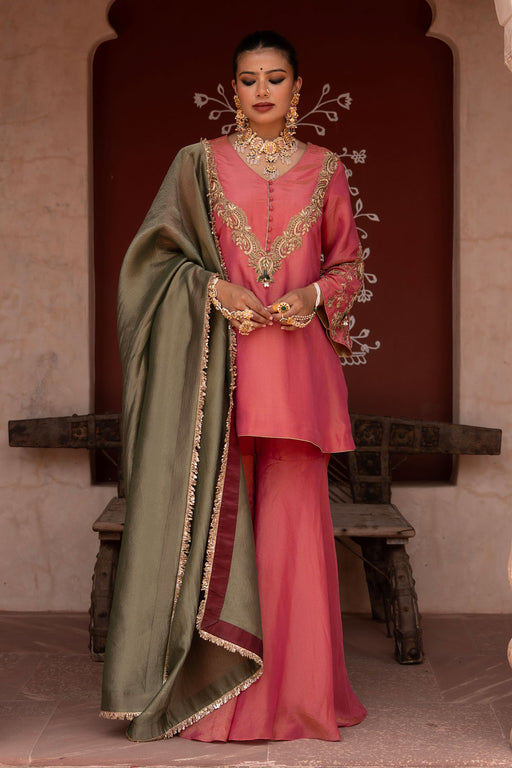 View full detailsVivid and festive, this hot pink gharara set is a celebration of bold contrasts and intricate artistry. Crafted in radiant tissue fabric, the kurta...