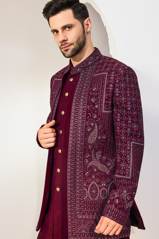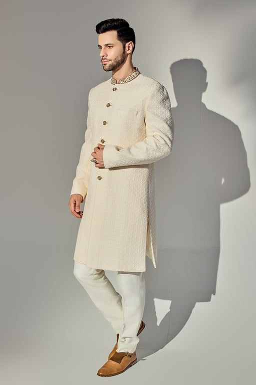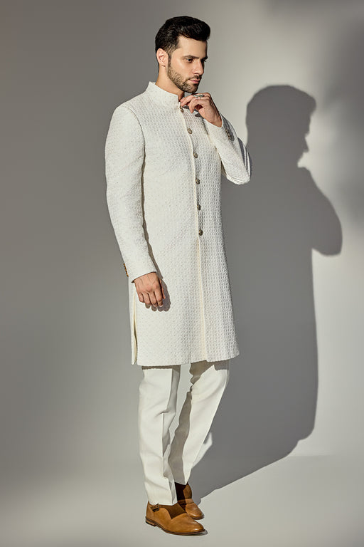 Offwhite Thread Work Achkan With Single Sequins Fabric: Silk Blend Fit: Comfort No. of components: 2 Wash Care: Dryclean Delivery Time: 10 Days