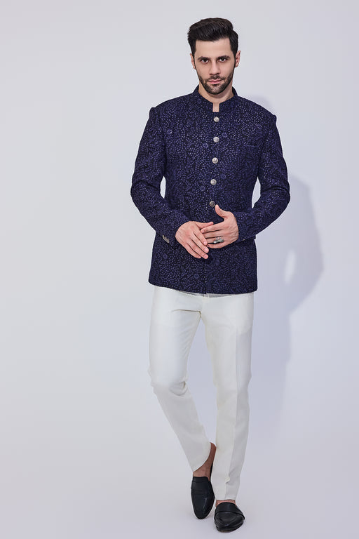 View full detailsNavy Blue Diamond Texture Achkan With Pants Fabric: Viscose Blend Fit: Comfort No. of components: 2 Wash Care: Dryclean Delivery Time: 10 Days