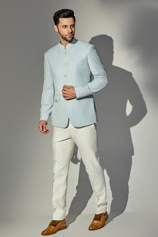 Light Blue Texture Bandhgala Fabric: Wool Blend Fit: Comfort No. of components: 2 Wash Care: Dryclean Delivery Time: 10 Days