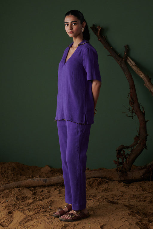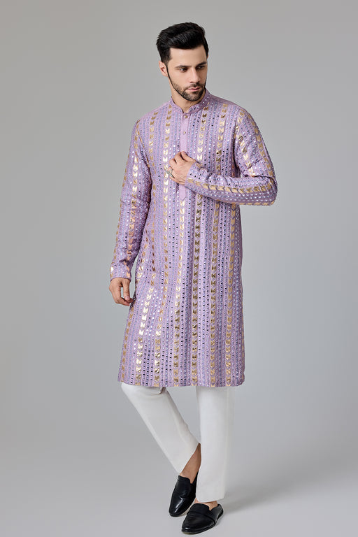 Lilac Leather Patch Mirror Kurta Fabric: Silk Blend Fit: Comfort No. of components: 2 Wash Care: Dryclean Delivery Time: 12 Days