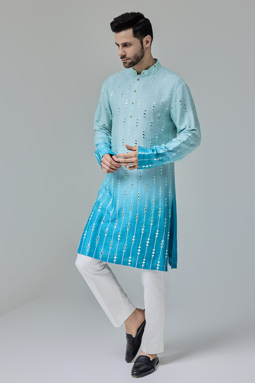 Blue White Ombre Kurta With Mirror Work Fabric: Silk Blend Fit: Comfort No. of components: 2 Wash Care: Dryclean Delivery Time: 10 Days