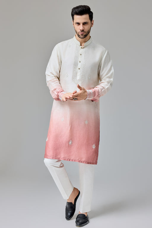 Rust White Ombre Kurta With Dori And Miroor Work Fabric: Silk Blend Fit: Comfort No. of components: 2 Wash Care: Dryclean Delivery Time: 10 Days