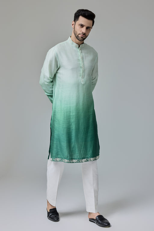 Green White Ombre Kurta With Mirror Work Fabric: Silk Blend Fit: Comfort No. of components: 2 Wash Care: Dryclean Delivery Time: 10 Days