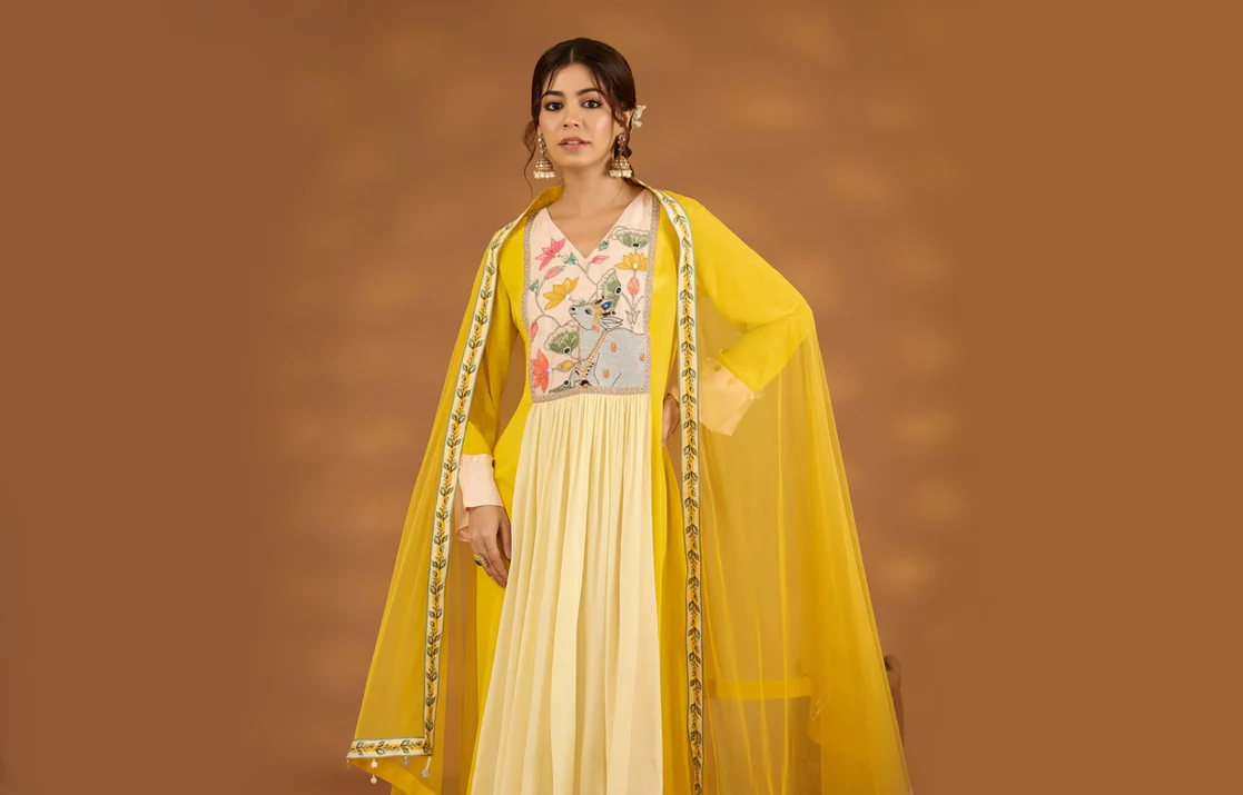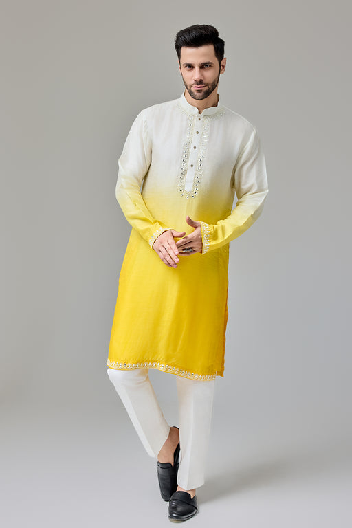 Yellow White Ombre Kurta With Dori And Mirror Work Fabric: Silk Blend Fit: Comfort No. of components: 2 Wash Care: Dryclean Delivery Time: 10 Days