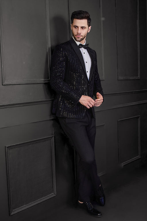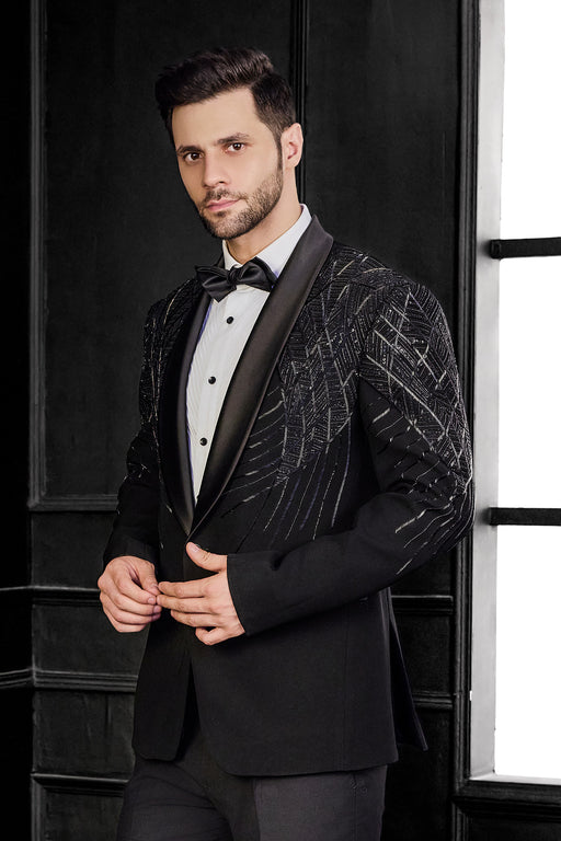 Black Katdana Embriodry Tuxedo Fabric: Poly Blend Fit: Comfort No. of components: 2 Wash Care: Dryclean Delivery Time: 10 Days