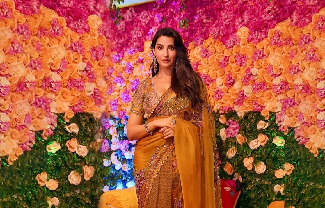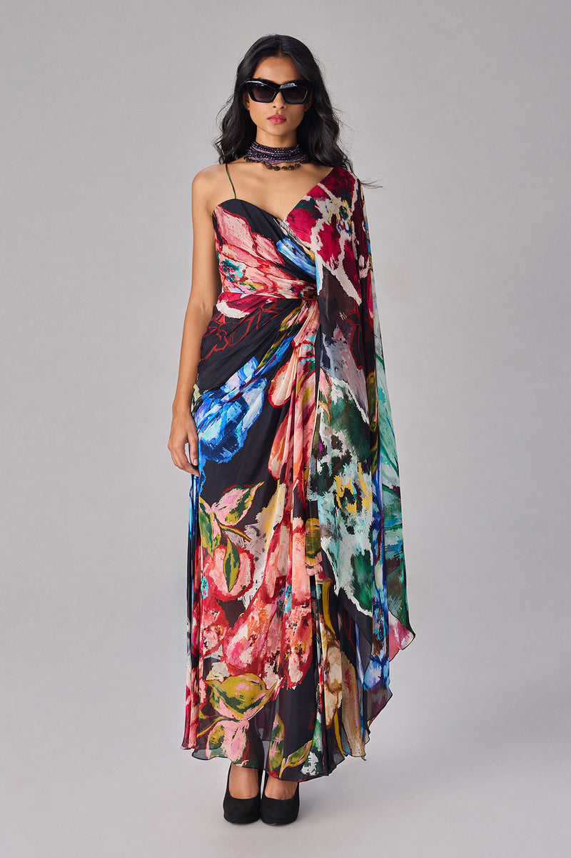 Bralet paired with embellished cape and pre-draped saree