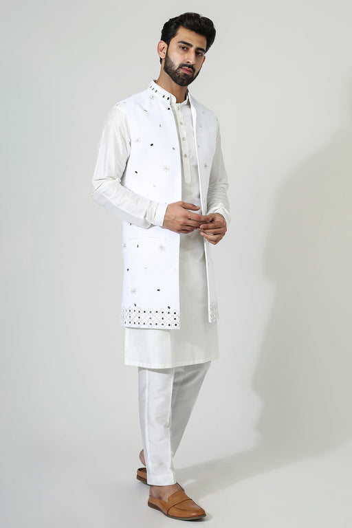 Offwhite Mirror Open Jacket With Kurta Pyjama Fabric: Linen Cotton, Cotton Silk Fit: Regular No. of components: 3 Wash Care: Dryclean Delivery Time...