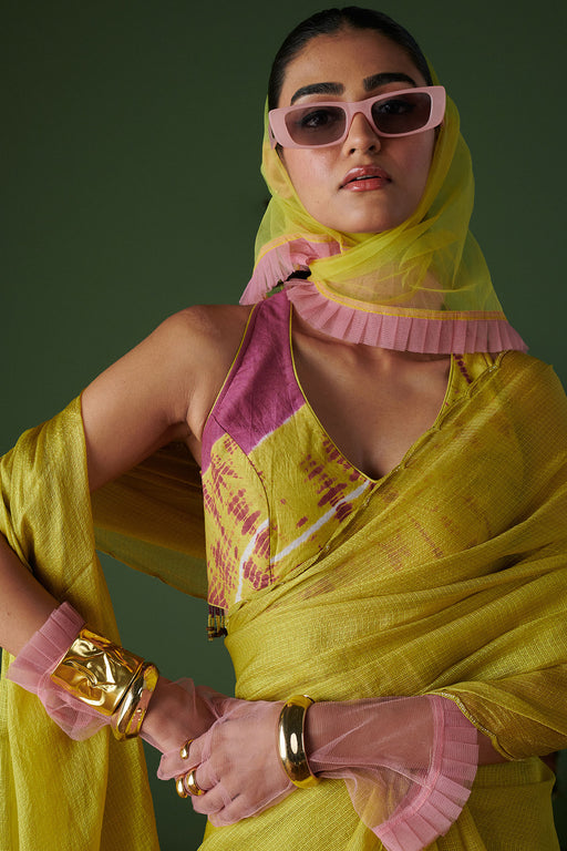 View full detailsBralet paired with pre-draped saree