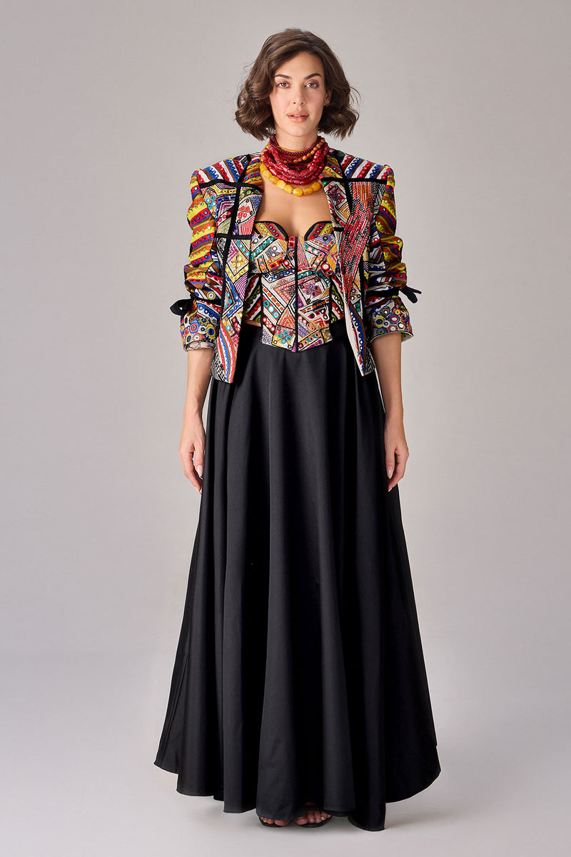 Embellished Jacket Paired with Flared Pants