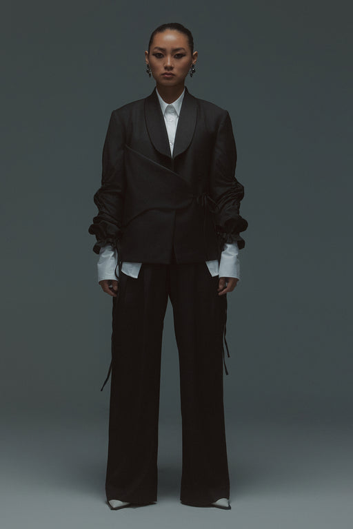 View full detailsThe Trousers blend sharp tailoring with fluid drapery for a statement silhouette. Crafted from a luxurious suiting fabric, they exude both power an...