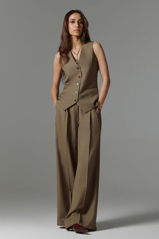 View full detailsRedefine classic tailoring with our High-Waisted Wide-Leg Trousers in a sophisticated olive brown. Colour : Olive Green Fabric : Poly : 70% Visco...