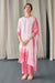 Ombre Pink Kurta Set with thread detailing on the yoke Set of 3-Kurta,Pants Dupatta. Crafted in Tencel Linen Derived from nature to return to nature. 100% Bio-Degradable. Environment Concious Model is 5'7 wearing size M.