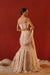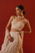 Kapda Dori's stunning nude lehenga set, beautifully adorned with intricate pearls, cutdana, stones and sequins work. The skirt features a full-length stuctured flared look . The nude color adds a touch of glamour and sophistication to your look, while the fabric texture ensures you feel comfortable all day or night long. It is styled with a nude net blouse fully embroidered with pearls, crystals, cutdana and sequins. Pair it with complimenting soft net embroidered dupatta.