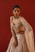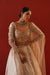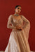 Kapda Dori's stunning beige tissue lehenga, beautifully adorned with intricate sequins, pearls, cutdana and stones work on belt. The beige color adds a touch of glamour and sophistication to your look, while the soft fabric ensures you feel comfortable all day or night long. It is styled with a beige tissue blouse hand embroidered with cutdana, crystals, stones and sequins. Pair it with complimenting beige net embroidered dupatta.