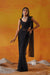 Kapda Dori's stunning black net ready to wear saree fully embroidered with crystals, beads, cutdana and sequins. The black color adds a touch of glamour and sophistication to your look, while the soft fabric ensures you feel comfortable all day or night long. It is styled with a black net blouse fully embroidered with crystals, beads, cutdana and sequins.