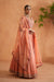Deepika Chadha's stunning coral dupion silk fabric blouse beautifully adorned with intricate thread, dabka,seuins,cutdana embroidery. The flowy Banarsi brocade fabric lehanga with beautifuly hand embroidered borders adds a touch of sophistication to your look, it is paired with soft net dupatta with multi color thread and hand embroidery on borders and ensures comfort all day long and is perfect for wedding and festive season.