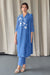 Crinkle Applique Tencel Kurta Set (of 3)- Cobalt Blue