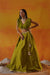 Kapda Dori's stunning green dupion silk lehenga, beautifully adorned with intricate sequins, cutdana and stone work . The green color adds a touch of glamour and sophistication to your look, while the soft fabric ensures you feel comfortable all day or night long. It is styled with a green geogratte drape blouse hand embroidered with cutdana, stones and sequins. Pair it with complimenting green geogratte embroidered dupatta.