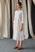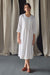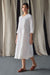 Pleatings on the yoke, Hand-Scalloped Edges Tonal Embroidery. Made with Ecovero Linen Blend. Dress Length 45 inches. 100% Bio-Degradable. Environment Conscious. Model is 5'7 wearing size M.