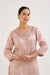 Old Pink Charm Tissue Kurta with Sharara set is a refined yet striking ensemble that combines timeless elegance with modern detailing. Whether you're attending a wedding, festival, or an evening celebration, this set is sure to make you the center of attention. -This Set contains 2 pieces - Kurta, Sharara and Dupatta - Made from luxurious tissue and have structured fit. - Adorned with intricate Aari embroidery and detailed Adda work on the neckline - The sharara is tailored from tissue fabric with a flared silhouette - Pair up with dupatta for more refind look.
