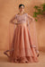 Deepika Chadha's stunning peach net fabric off shoulder blouse beautifully adorned with intricate pearls, sequins, cutdana and crystals embroidery. The flowy peach layered organza fabric lehenga which adds a touch of sophistication to your look. it is paired peach net dupatta with hand embroidered borders which keeps you comfortable all day long and is perfect for wedding and festive season.