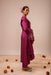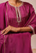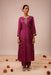 Purple Suit Set: A-Line Hand Embroidered Suit Set with Hand Embroidered Pant bottoms paired with Machine and Hand Embroidered Organza Dupatta