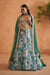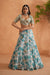 Teal blue mirror embroidery blouse, printed lehanga,dupatta