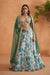Deepika Chadha's stunning Teal blue and white printed georgette fabric blouse, beautifully adorned with intricate mirrors, cutdana, sequins and zari hand embroidery. The flowy Teal blue amd white peacock printed lehanga with black zari and beads highlights adds a touch of tradition and sophistication to your look, while the soft net embroidered Dupatta with golden borders lace keeps you light and comfortable all day long and is perfect for wedding and festive season.