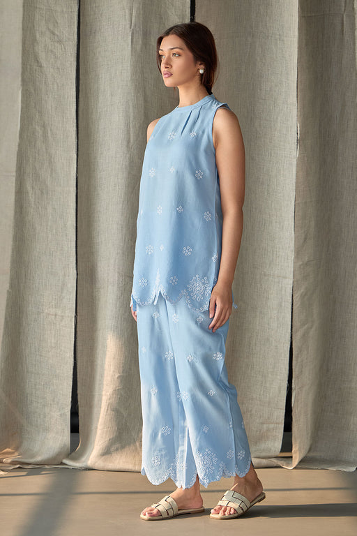 View full detailsYoke detailing & sideways dotted embroidery.Crafted in Tencel LinenKurta Length 45 inches. Farshi(Pant) Length-37 inches.100% Biodegradable. En...