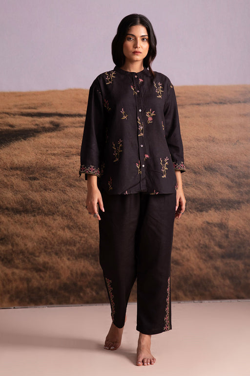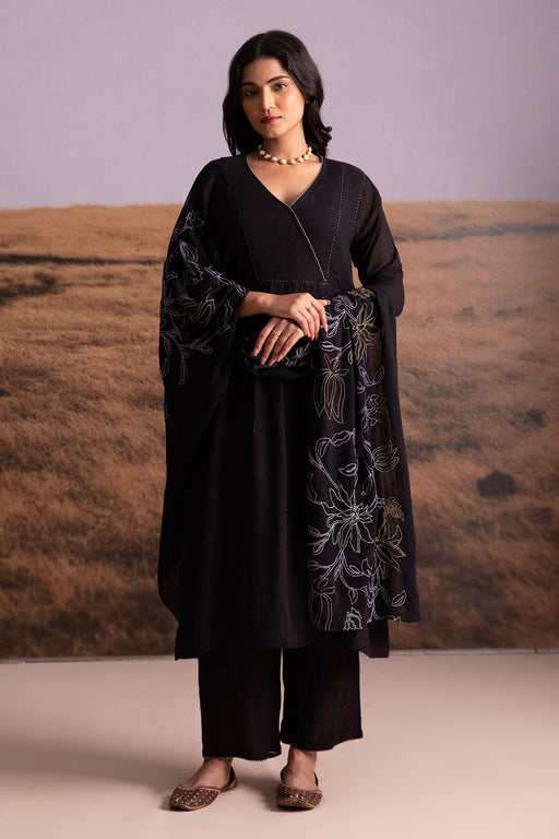View full detailsHand scalloped edges with tonal embroidery on Ecovero Linen Kurta Colour: Black & Natural Occasion: Casualwear Fabric: Tencel Linen Fit: Comfor...