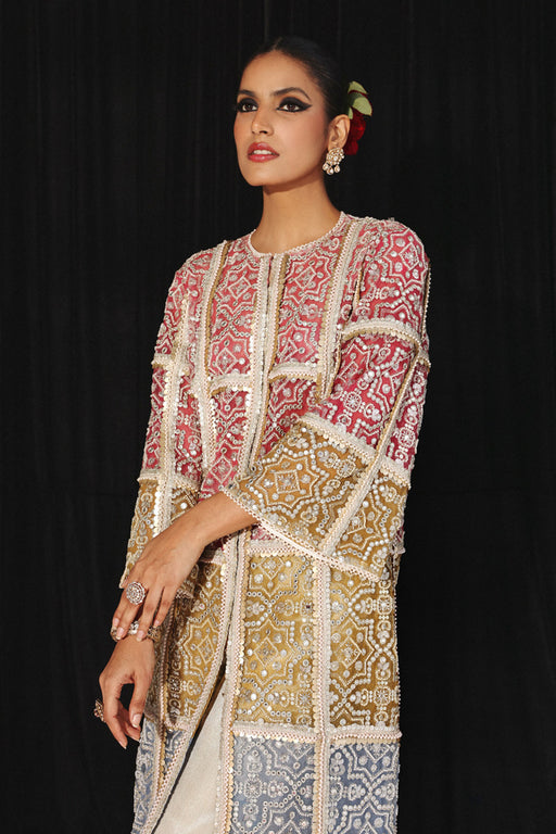 View full detailsThe Zinnia coord set is made from hakoba embroidered fabric. It is a button down tunic paired with hakoba embroidered lined pants and a belt attach...
