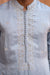 Powder Blue Satin Linen Kurta With Delicate Embroidery Paired With Straight Fit Off White Panys