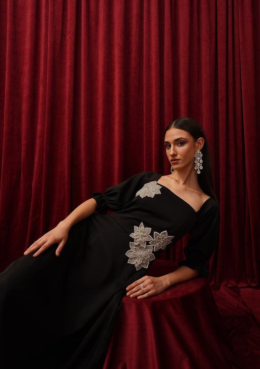 View full detailsDesigner NotesHand embroidered detailShoulder padsBack concealed zipperFit, Fabric, and CareImported Fabric (Polyester based) Dry Clean onlySteam I...