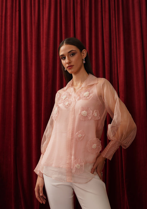 View full detailsDesigner NotesHand embroidered flower detailsPullover topComes with an elasticated strappy innerRelaxed fitFit, Fabric, and CareTop - 100% Silk Lin...