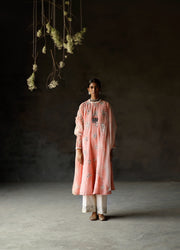 • Soft Pink silk chanderi Anarkali with all over mirror embroidered floral buttas