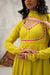 Kapda Dori's stunning lime green banarsi booti georgette anarkali detailed with fuchsia contrast gota pearl lace. The lime green color adds a touch of glamour and sophistication to your look, while the fabric ensures you feel comfortable all day or night long. It is styled with a lime green sheesha crape dupatta beautifully adorned lace in zari and sequins work. Pair it with lime green lycra churidar.