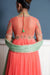 A living coral shimmer chiffon embroidered Anarkali is a dazzling and glamorous ensemble that effortlessly captures attention. The vibrant red color, coupled with the shimmering effect of the chiffon fabric, creates a captivating and radiant look. The Anarkali silhouette adds a touch of regality and grace, while the intricate embroidery work enhances the overall allure. The embroidery typically features delicate patterns, sequins, or beads, adding depth and texture to the outfit. This Anarkali is perfect for formal events, parties, or festive occasions, exuding a timeless and enchanting beauty.