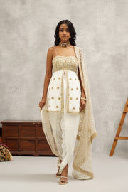 white embroidered Peplum dhoti set