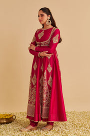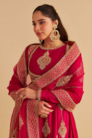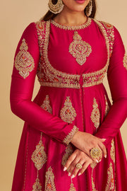 Zainah - Dabka Zardozi Embroidered Silk Hotpink Anarkali Set