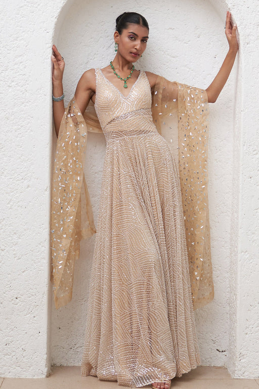 View full detailsTraditional Indian Look In All Its Regal Splendor In Our Persian Carpet Inspired Anarkali Set With Intricate Hand Embroidery On The Yoke And The Sk...