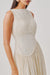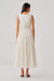 Poplin Corset Dress Shaped With A Structured, Sculpted Bodice That Cinches The Waist With Quiet Precision. Top Detailed With Lace–Ruching Wave Appliqué, Creating Soft, Organic Curves That Trace The Silhouette. Falls Into A Fully Ruched Skirt, Forming Vertical Textures That Elongate And Add A Sense Of Fluid Movement. Contour Seams Trace Soft, Curved Li