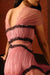 Dusty Pink Modal Satin Gown, Fully Ruched To Create A Soft, Rippling Texture From Bodice To Hem. Paneled With Dusty Pink Lace And Black Lace Appliqué, Forming Sculpted Wave.Like Lines That Contour The Silhouette. Sheer Lace Yoke And Sleeves Add An Airy, Romantic Lightness Against The Structured Ruching. Falls Into An Elongated, Column.Style Shape That Moves With Quiet, Liquid Grace