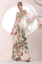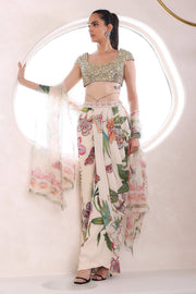 Embroidered draped dhoti pants with embroidered blouse