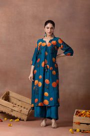 Amber- Teal Printed Suit Set