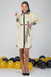 Organic cotton flax shirt dress paired with handloomed corset belt, to enhance the waist